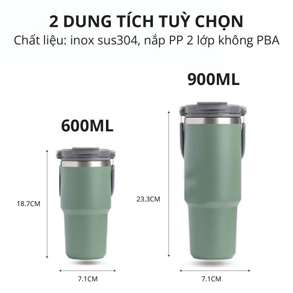Ly Giữ Nhiệt inox 304 không gỉ sét kèm quai xách và ống hút size 600ml và 900ml MK